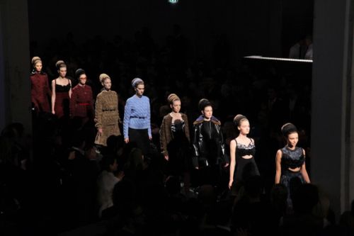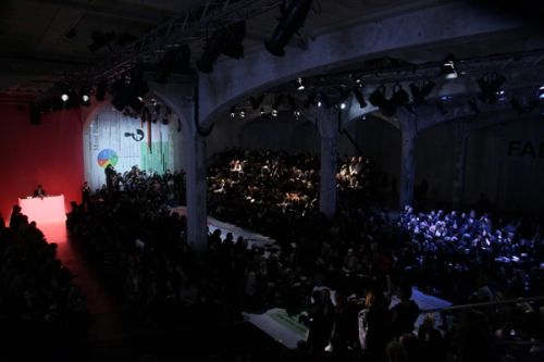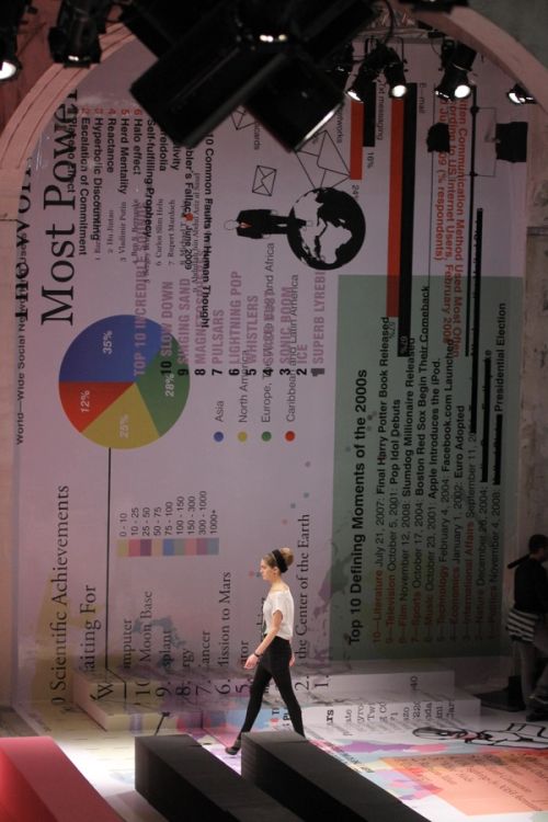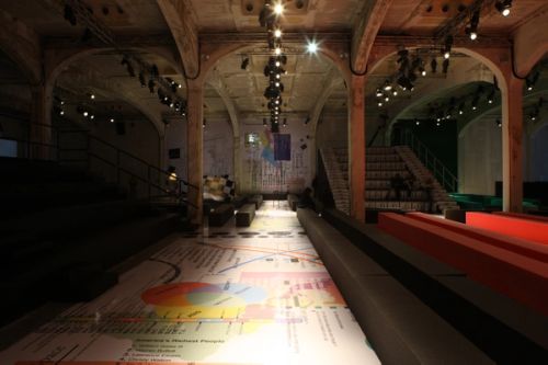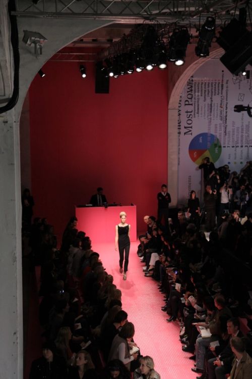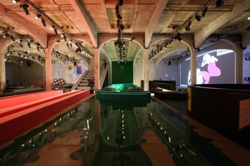 In his work On the Art of Buildings in Ten Books, Leon Battista Alberti asks the following question: "If the city is like some large house and the house in turn like some small city, cannot the varied parts of the house … be considered miniature buildings?" The Fall / Winter 2010 Prada catwalk show space is in an abstraction of a city, yet conceived on the domestic scale of a club, with its dark, cozy and moody atmosphere.