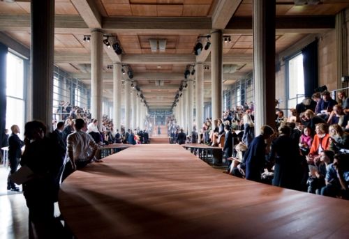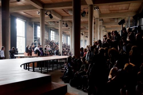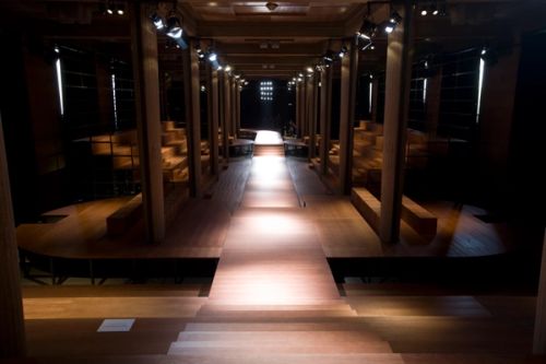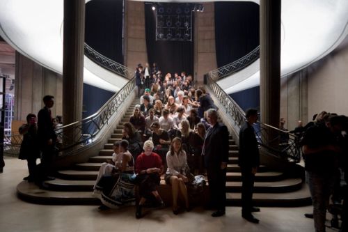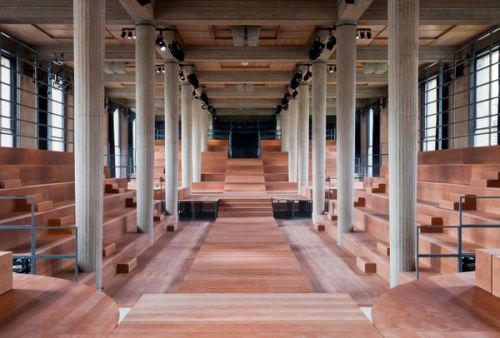 The request for a gigantic show is an opportunity to develop an architectural investigation of Auguste Perret's Palais d'Iena. As opposed to designing a traditional catwalk, for the Miu Miu spring/summer 2013 show, AMO organizes the audience on a cascade of seating platforms that float like a double exposure over the existing interior architecture.