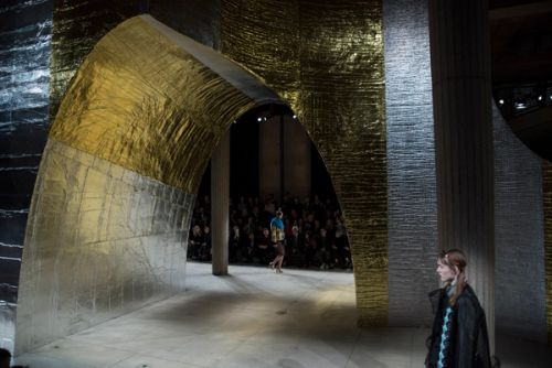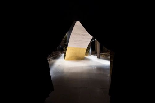 For the 2016 SS Miu Miu show AMO invades the monumental architecture of August Perret’s Palais d’Iena in Paris with a timeless ruin, introducing a dramatic counterpart to the rigorous linearity of the Palais.