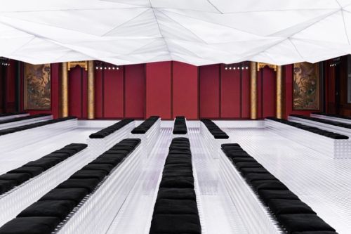 For the Prada show at the Prince Shuncheng Mansion in Beijing, AMO proposes a scenography that invites guests to gradually discover the 400-year-old former royal compound. The fashion show is hosted in the Yin An palace, situated in the center of the compound, from which visitors move towards the palace’s courtyard for an informal dinner, followed by an afterparty in the pavilions around the ponds of the back garden.