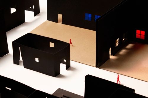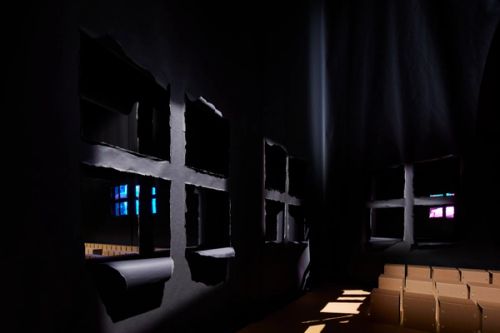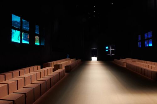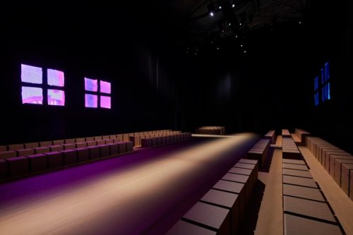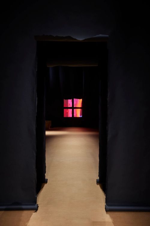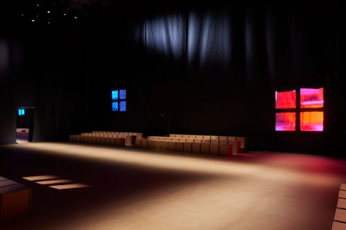 For the Prada Spring Summer 2023 womenswear show, AMO transforms the Deposito inside Fondazione Prada into a fictional paper house featuring videos by director Nicolas Winding Refn.