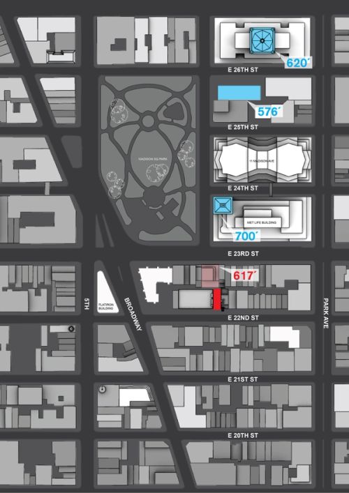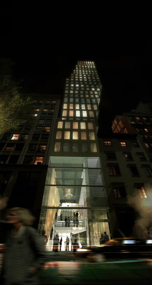 23 East 22nd Street aims to provide an intuitive resolution to the challenge of creating a luxury residential tower in a culture of congestion. The building's external form and internal organization are a deliberate reaction to its immediate context. Located just off Madison Square Park, on a site just 33 feet wide, the building is the final phase of Slazer Enterprises One Madison Park development, which also includes a 60-story tower on 23rd Street, currently under construction.