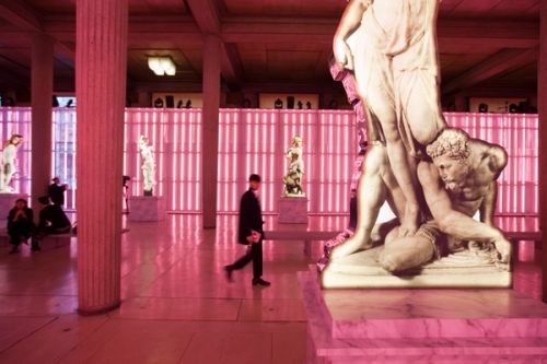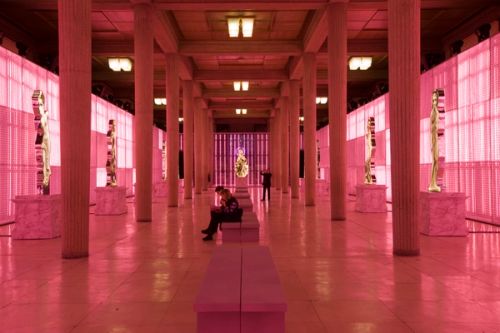 For the 24-Hour Museum, AMO collaborated with Prada and artist Francesco Vezzoli to transform the 1937 Palais d'Iéna into the venue for a social and architectural laboratory, featuring an opening night party, public and press tours, and visits by schoolchildren. AMO designed the mise-en-scene of the modernist pavilion, by Auguste Perret, using the various spaces to stage - and interrogate - the three types of museums spaces that are predominant today.