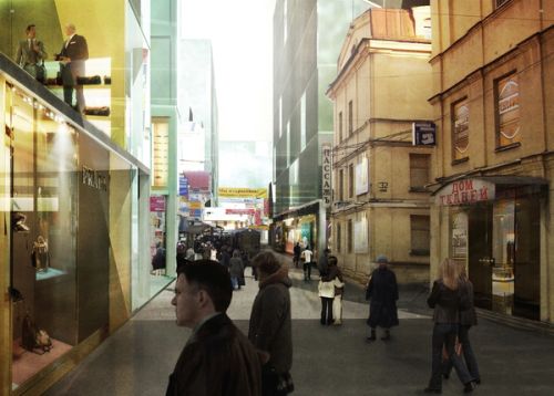 Consisting of multiple freestanding buildings arranged within a market yard, Apraksin Dvor represents a unique urban typology in the historic centre of St. Petersburg. The uniqueness of the site, which makes it prime for preservation, is also the most advantageous aspect for development.