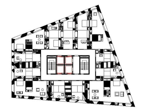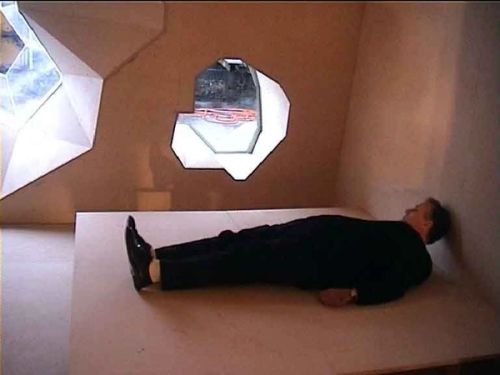 Could mankind’s love of prismatic form be one of the losses of 9/11? Are we condemned by neo-caveman to regress to the level of the cave dweller? Our addiction to comfort can only terminate at the cave. In retrospect, the history of Astor Place is spooky. It began as an effort by two European architects to conceive a boutique hotel in Manhattan for the inventor of the type – Ian Schrager. It turned, through the combined effects of the client’s insecurity, financial considerations, and the architects’ uncanny premonition, from an initial proliferation of miniature WTCs into, finally, a vertical piece of Afghanistan rock, perforated by inhabited caves fifteen months before 9/11.