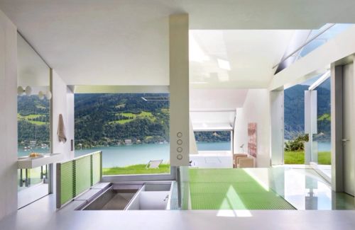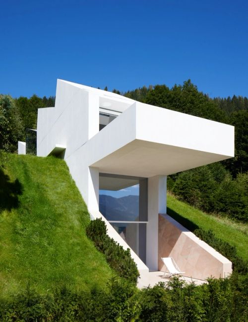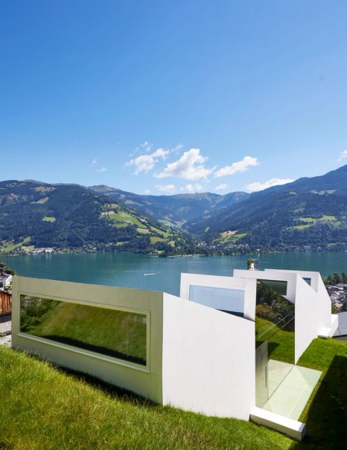 I met the client at a digital conference in Munich – he asked us to design a house on a very narrow and steep site next to his sister’s house in Zell am Zee, the village where he had grown up.