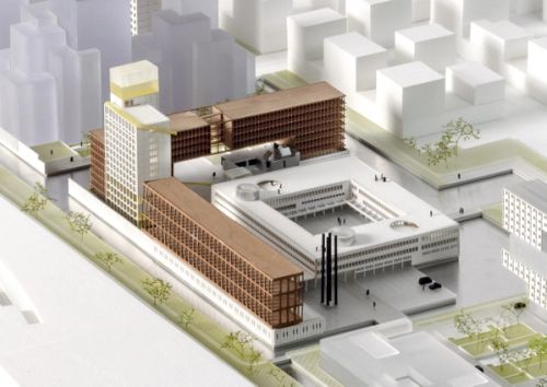 The Bijlmerbajes was a prison complex built in the 1970s in the southeast periphery of Amsterdam. As the city centre expands in the subsequent decades, the Bijlmerbajes begins to take a central location in Amsterdam, while remaining enclosed by walls, detached from the city. As part of a team led by real estate developer AM, OMA has designed the Bajes Kwartier masterplan – a 135,000 m2 development on the 7.5 ha Bijlmerbajes site – transforming the former prison complex into a hub for sustainable living, well integrated with Amsterdam’s urban fabric.