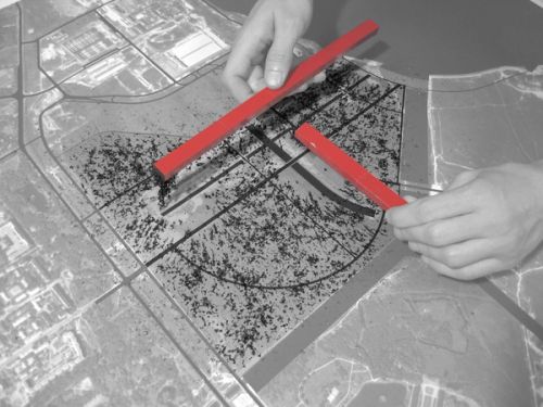 The remaining part of the site is composed of three quarters with various residential typologies, grouped together in clusters. All different sections of the site contain a mix of different land-uses. The density in the bands is higher; that in the quarters lower.