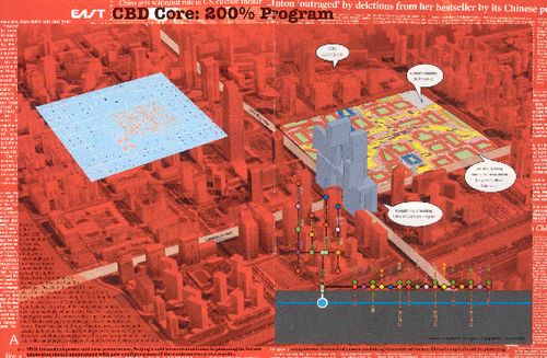 OMA's CBD Core proposal evolved from the observation that the tower has made the Central Business District into a structure that is identical everywhere. At the same time, however, global economic pressure and extraordinary advances in information technology have dramatically changed the nature of office work. The increasing ubiquity and mobility of information technology paradoxically stresses the importance of face-to-face human interaction so that, at the dawn of the 21st century, business is communication.