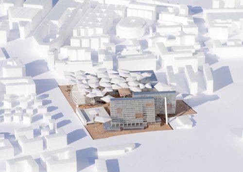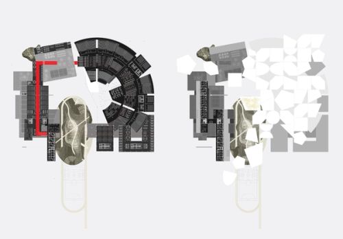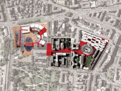 In the middle of still ongoing turmoil, we propose a formal composition of objects that represents a three dimensional re-learning of humanistic values. We arrange a multiplicity of structures and programs in such a way that, beyond a direct response to Bocconi's immediate needs, we also address the less explicit questions raised by its current situation. As a counterpart to Bocconi's severe architecture, our project offers a degree of complexity. Vis-à-vis the old campus - a casual ensemble of more or less independent buildings - the new complex is conceived as a core, where two clusters of interdependent buildings, one introverted and the second extroverted, around an open center, form a larger whole.
