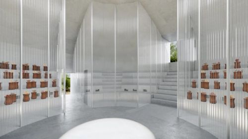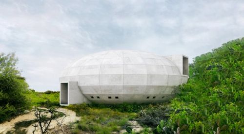 The function of the Mushroom Pavilion, as its name suggests, is to cultivate fungi, but also the exchange between food and the local communities of Puerto Escondido by teaching them about the growth process. It will also be integrated into the kitchen of the foundation and of Hotel Escondido. To convey this simple yet important purpose, we conceived a pavilion as a basic, oval form. Like an incubating egg, the self-supporting ellipsoid is derived from an optimized interior organization for growing mushrooms.