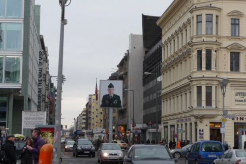 The commission followed two competition entries OMA submitted to the Internationale Bauaustellung (IBA) in 1981. The program includes 26 apartments which occur as three types: 1. Penthouses 2. Three floors of flats which are reached from a double-height gallery 3. Garden access maisonettes. The apartments sit on a podium above the new Checkpoint facilities for customs workers and Allied forces. The building was completed shortly after the Berlin Wall came down.