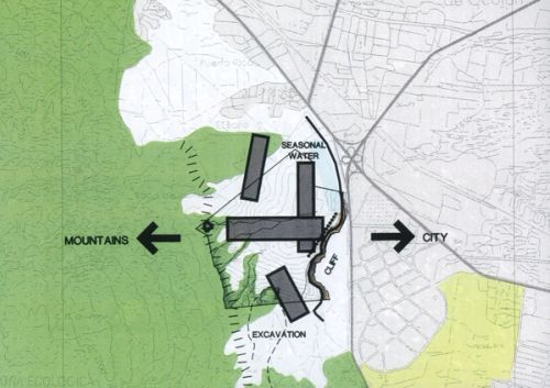 "El Baijo" is a new planned Cultural and Business Center for the city of Guadalajara, in Mexico. The site is located in the periphery of the city adjacent to gentle mountains. It is connected to the center and the airport by the encircling "Anillo Perisferico. " The project's ambition is to provide Guadalajara with a new center with a convention centre, exhibition hall, a commercial and entertainment centre, new fairgrounds, an amphitheatre, corporate towers, and, in a following phase, will intergrate an art musem, performing arts centre, a university and housing.