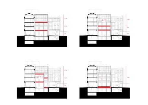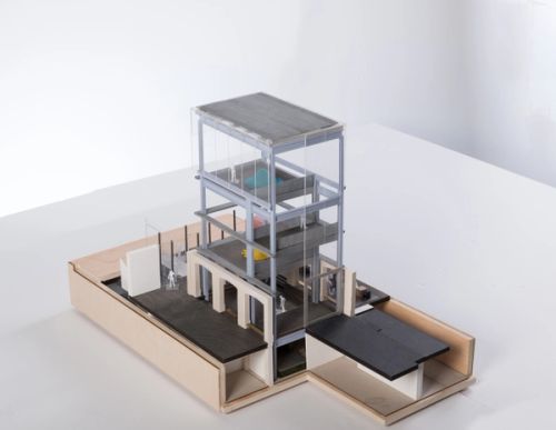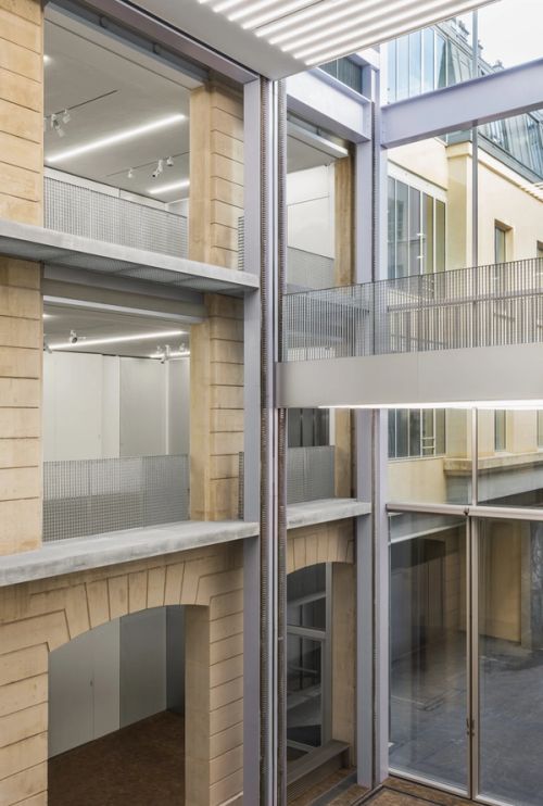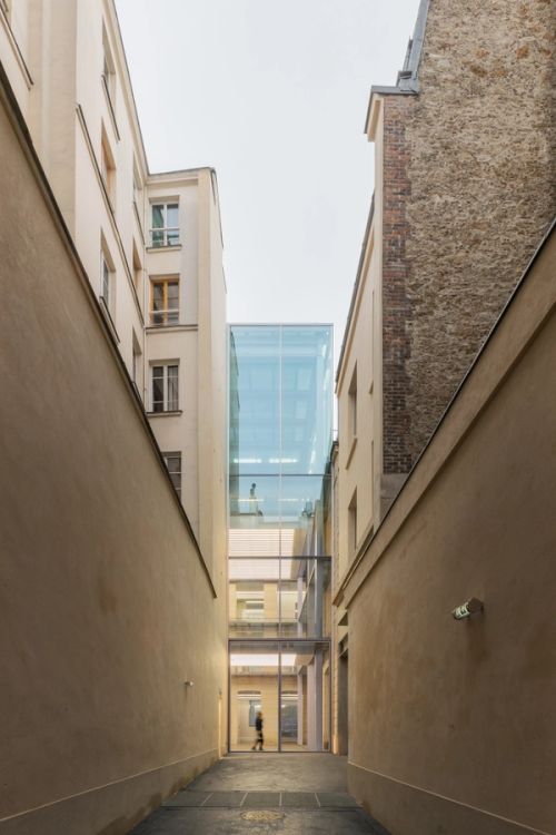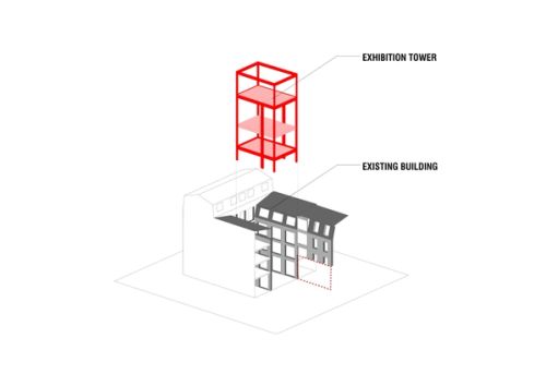 A late 19th century industrial building is refurbished for Fondation d’Entreprise Galeries Lafayette to house exhibition and production spaces, with a focus on creation, innovation and research. OMA has inserted an exhibition tower into the courtyard of the building in which two sets of mobile platforms will offer a large repertoire of spatial configurations; the programmatic flexibility provided increases the potential of the existing building. A production centre at the heart of the site underpins the Fondation, while the ground floor becomes a passage connecting rue du Plâtre to rue Sainte-Croix de la Bretonnerie and hosts the public programs.