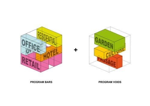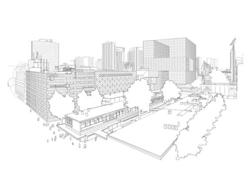 OMA redesigned the FORUM Rotterdam project in collaboration with Wessel de Jonge Architecten, based on a revised brief from the client Multi drafted in 2014. Originally intended as an ambitious new building in the center of Rotterdam, positioned in between the ABN AMRO bank and the Lijnbaan, the FORUM has morphed into a renewal, transformation and renovation project of the existing building block. The original building is a reflection of Rotterdam’s urban history since the 1940s: a hybrid block with traces of Witteveen’s enclosed block architecture and Van Traa’s modern open plan urbanism.