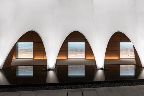 A compact peninsula with a sparse interior, Qatar has developed its industries and cultures along the coast for centuries. From the Coastline, We Progress reflects this history and the way it has been shaped to make promises for the years ahead. Spanning twelve key maritime locations, the exhibition for the Qatar Pavilion presents a comprehensive exploration of Qatar's relationship with its shores.