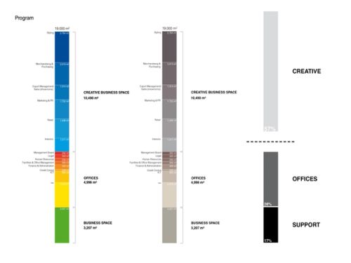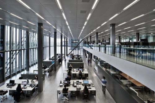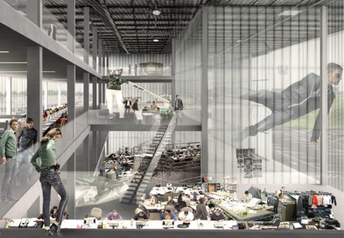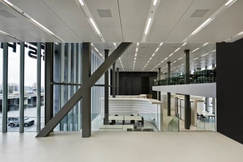 Situated next to the A10 in the industrial Zuid-Oost area of Amsterdam, the new HQ for G-Star RAW consolidates G-Star RAW's disparate facilities into a single building that aims to stimulate interaction between various departments.