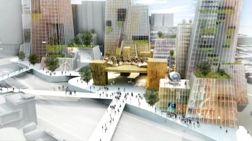Shanghai is a fragmented collage of different scales and styles. The identity of the city lies in the diversity of traditional, colonial, communist, and "post-modern" architecture united only through the city’s history. The Global Financial Centre on the Bund – yet another mixed-use project among all these opposing elements – has the natural task of addressing and emphasizing all the contradicting qualities of Shanghai without compromising their benefits.