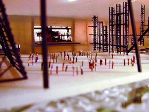 A section through the Paris Opera reveals a Faberge egg in which finally the auditorium - the last egg - is tiny in comparison to the volume of the whole. In the classical opera the inflated areas around the auditorium- the galleries, foyers monumental staircases, grand entrances - accommodated richly textured, hierarchical social rituals. The opera remains a last refuge of bourgeois culture. In opera, spaces of representation exceed the space of presentation. Only through the liberation from the adjunct volumes can the primacy of the theater itself - the room - be reasserted.