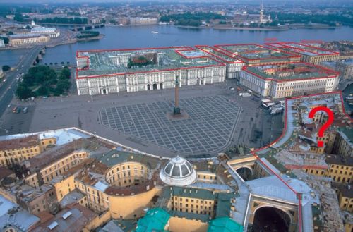 The Hermitage is a former palace, used as a museum. With the addition of the general staff building, the Hermitage gained 800 rooms to the existing 1,200. The Hermitage and its surroundings is becoming an urban quarter, incorporating the palace square where the revolution started. OMA proposed an extension project dealing not only with architecture but as well with the distribution of 3.5 million artifacts across 2,000 rooms.