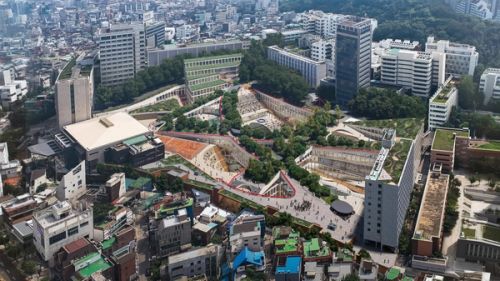 According to the Oxford Dictionary, a campus is defined as “the buildings of a university or college and the land around them.” In the typical image that illustrates this definition, "the buildings” appear politely distanced with “the land around them” a generous stretch of green land. That is the case of the Oxford University, but also of many campuses in Korea. The Hongik Seoul Campus, however, is an exception. Built in the 1950s on the slopes of the Wau Mountain in Seoul, it has been rapidly saturated with buildings, reaching the limits of expansion. “The land around them” hardly exists today. It has become “the land between them.”