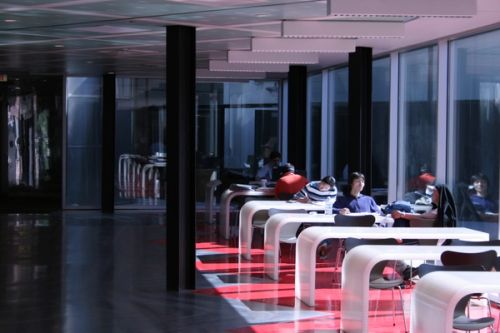 The McCormick Tribune Campus Center seeks to reinvigorate the urbanism inherent – but long since neglected – in Mies van der Rohe's 1940 masterplan for the Illinois Institute of Technology. The large single-storey Campus Center provides a focal point for the previously sundered halves of the campus, and features a noise-absorbing steel tube wrapping the Elevated metro that runs directly over the building and, inside, a dense mosaic of programs including a bookstore, food court, café, auditorium, computer centre, and meeting spaces.