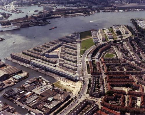 OMA's intervention in the IJ-plein site is both urban and architectonic. The urban plan is the basis for OMA's supervision over the design of seven housing projects, designed by six architects, including OMA.
