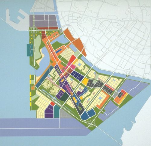 O.M.A. established a zoning code which uses the unique features, natural and artificial, of the site.