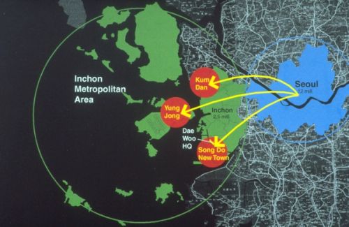 Inchon, located between Seoul, Kimpo Airport, Inchon International Airport, the oceanfront, and the harbour, is poised to become the IT and logistics hub of Northeast Asia. Compared to the chaotic and compromised conditions that now prevail in Seoul - where the pressure of development constantly outstrips planning - the ‘new’ regions on the Yellow Sea offer ambitions and opportunities to start from scratch and to create new communities where architecture, landscape and infrastructure form an integrated whole.