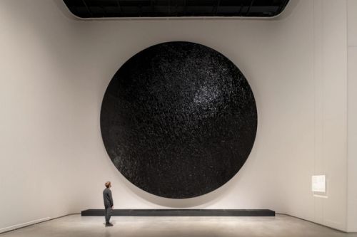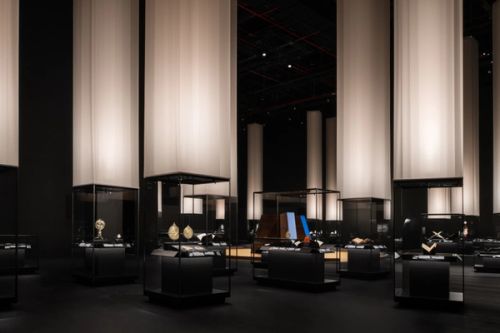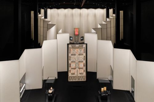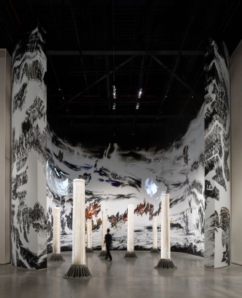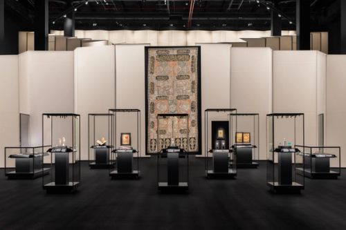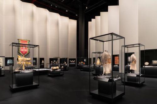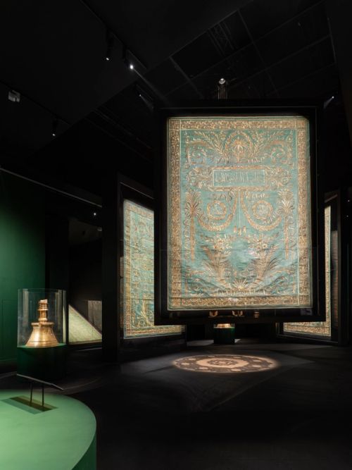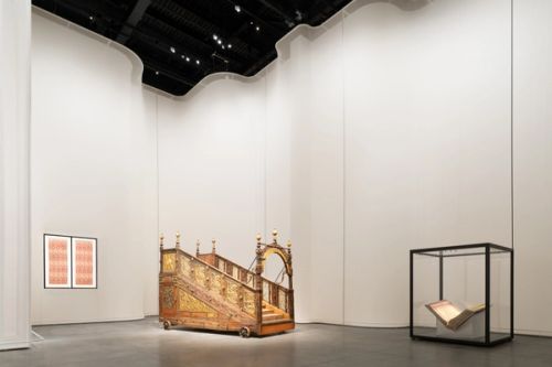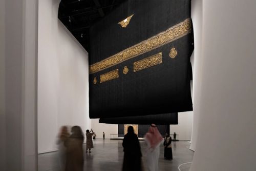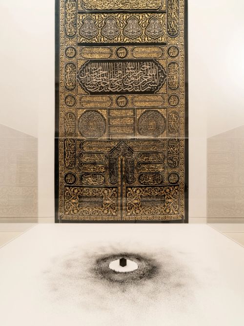 The 2025 Islamic Arts Biennale, titled And All That Is In Between, displays over 500 historical objects and 29 contemporary art commissions—more than double the content of the inaugural edition. Taking place under SOM’s Hajj Terminal canopy at Jeddah’s King Abdulaziz International Airport, the exhibition is divided into seven components that include indoor and outdoor areas: AlBidayah (“the Beginning”), AlMadar (“the Orbit”), AlMuqtani (“Homage”), AlMidhallah (“the Canopy”), AlMukarramah (“the Honored”), AlMunawwarah (“the Illuminated”), and AlMusalla, a space for prayer and gathering.