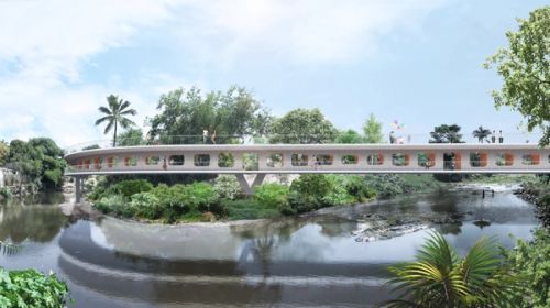 Part of a larger reconstruction effort by Infonavit following the 2017 earthquakes in Jojutla de Juárez, a municipality located in the south of the state of Morelos, Mexico, OMA New York has designed a new pedestrian bridge connecting the eastern zone and downtown Jojutla, which had suffered structural and environmental damage.
