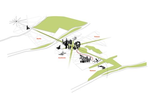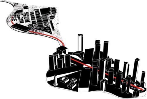 The business district, struggling to maintain and expand its position on the international scene, needs a focal point, capable of bringing it together as well as distributing it. A pump. A heart.