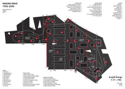 Curated by Rem Koolhaas and Samir Bantal of OMA/AMO and Fatma Al Sehlawi and the Qatar based research team from Atlas Bookstore, and designed by a team from OMA/AMO, Making Doha 1950-2030 brings together seventy years of photographs, models, plans, texts, films, oral histories, and archival materials to chart Doha’s transition from organic growth to more modern and deliberate planning practices.