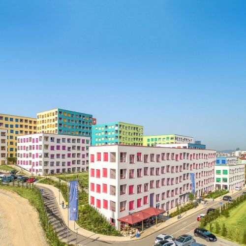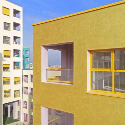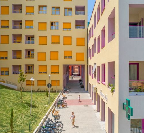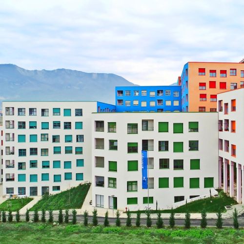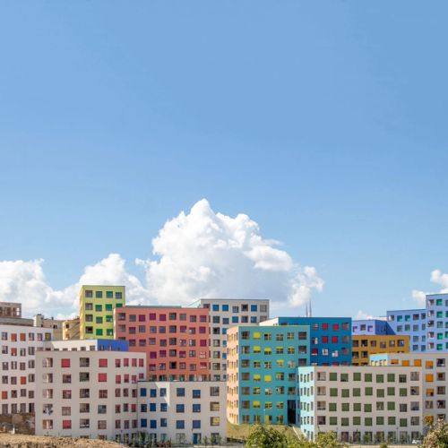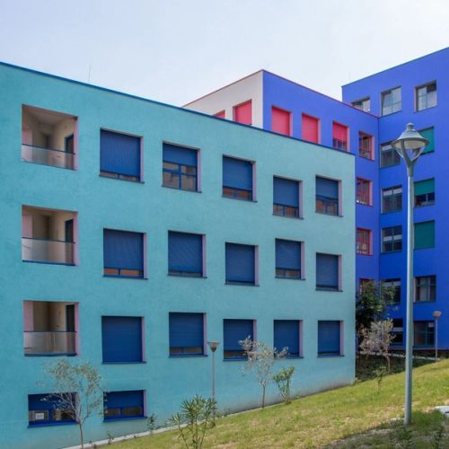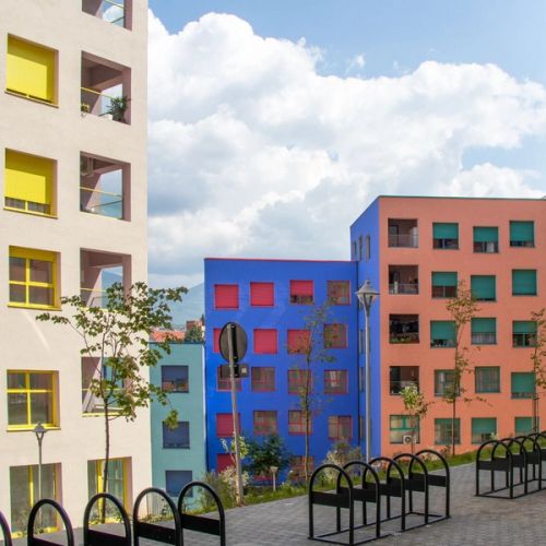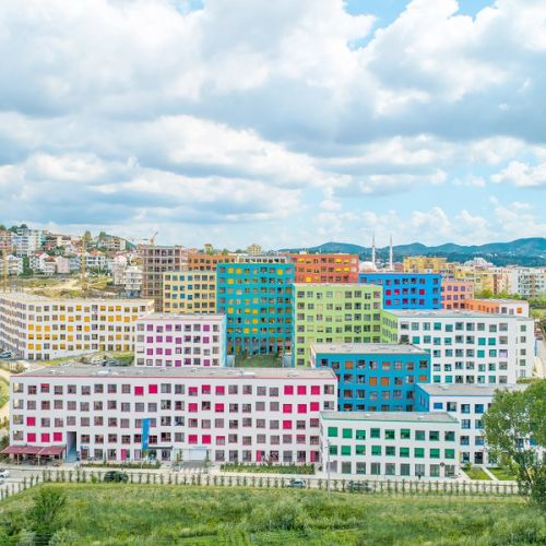 The project covers a plot of land in the eastern part of the city, bordered by mountains and former communist quarters to the north, and informal settlements from the 1990s to the south. The site has a very prominent slope: the difference between the lowest and the highest point is 27 meters, an equivalent of a nine-story building.