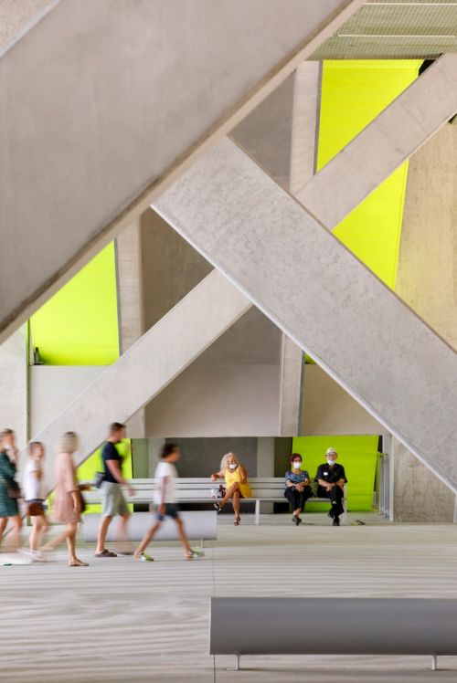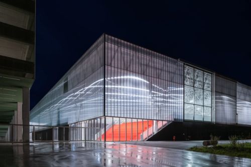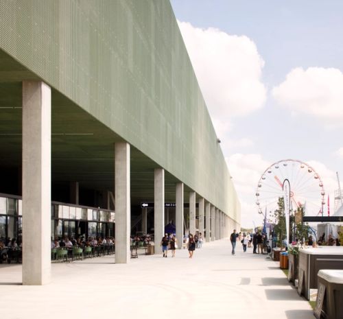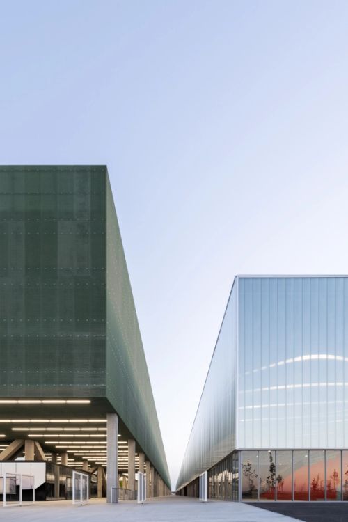 MEETT, Toulouse’s new Exhibition and Convention Centre, is located in the innovation zone north of Toulouse. The project is not only about architecture, but also about infrastructure, urbanism, landscape and public space. The 195,000m2 exhibition and convention center is positioned in between the city and the countryside: it connects urbanized plots to the south – mainly dedicated to aeronautics, including the airport hangar of Airbus– to an agricultural landscape to the north.
