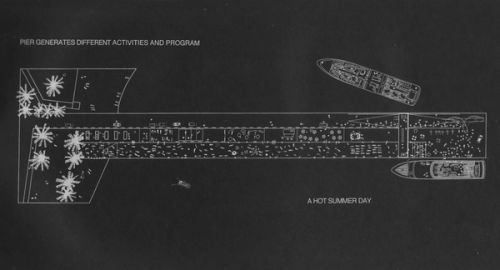 The piers mark the location where the exchange of both transportation systems takes place. Movement of people and speed become relevant issues to its manifestation.