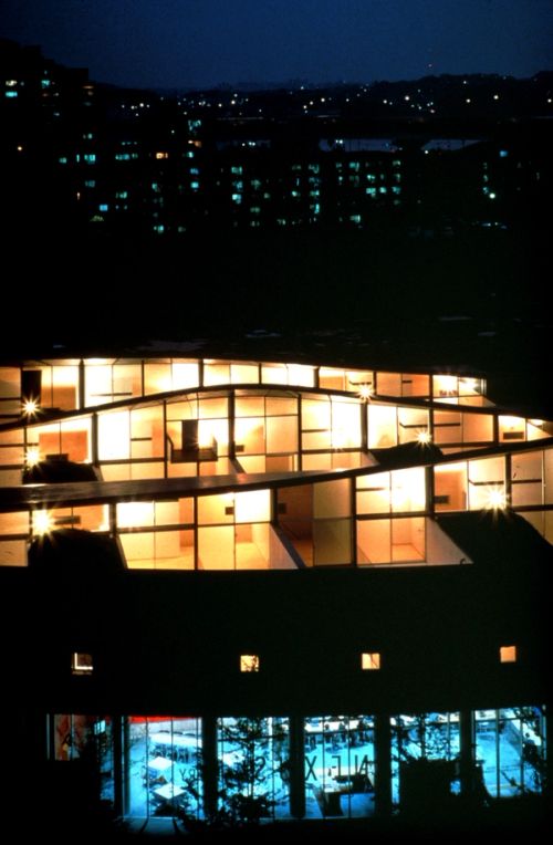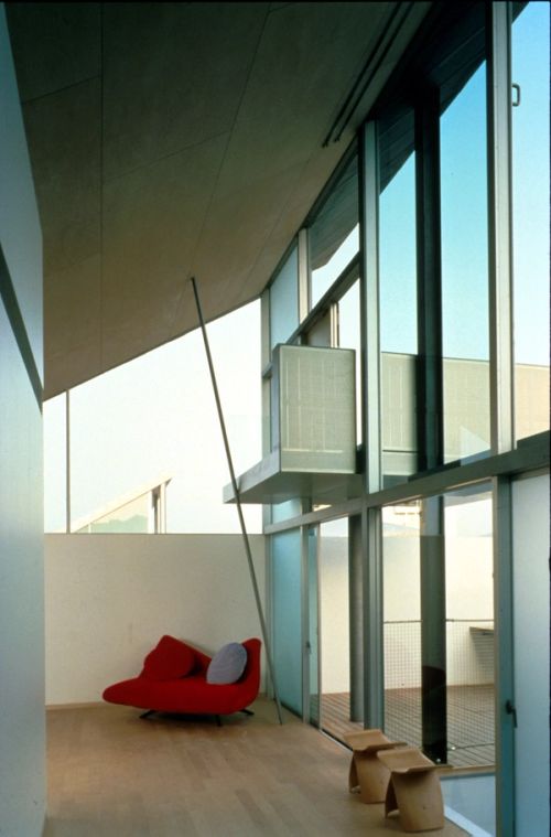 This project consists of 24 individual houses in the Kashi District of Fukuoka, each three stories high, packed together to form two blocks. Each house is penetrated by a private vertical courtyard that introduces light and space into the center.