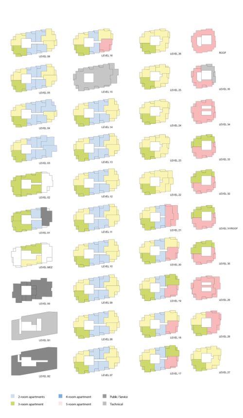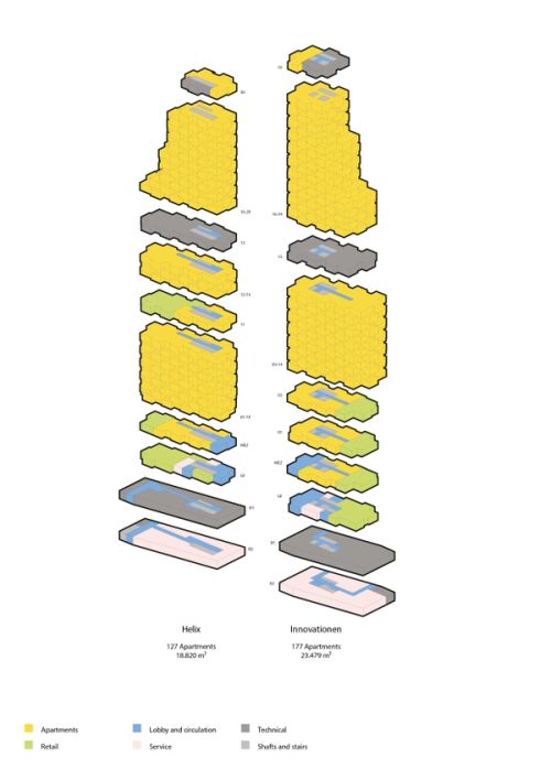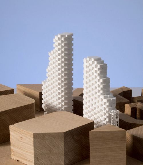 The Norra Tornen project started with two inherited building envelopes, the remains of a cancelled project initiated by the former city architect Aleksander Wolodarski. Each a kind of 'crescendo' composition of different heights – neither slab nor tower – prohibit the unfolding of an uncompromised typology. Conversely, the opted program, apartments with an emphasis on large outdoor spaces, prevented too literal a translation of the envelopes into architectural form.