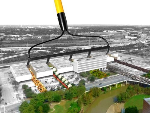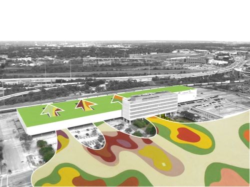 Houston, called the “Bayou City” is cut through with verdant swaths of land made resistant to development by their propensity to flood. Its downtown sits where two of these bayous, the Buffalo and the White Oak, cross. At the northern end of downtown— across the Buffalo Bayou from the core of 1970s and 1980s office towers, the vibrant theater district, and major civic institutions—a 500,000-square-foot concrete warehouse and office building sits on the site of what was once Houston’s Grand Central Station.