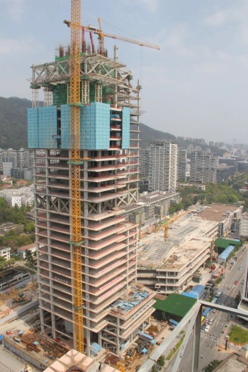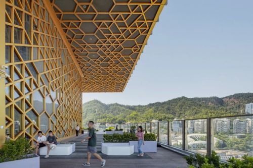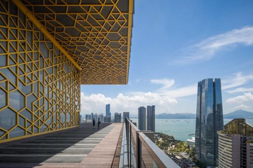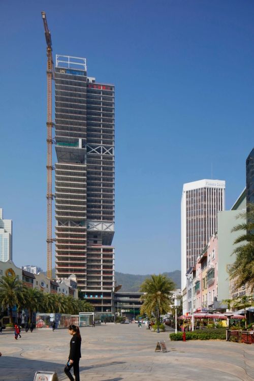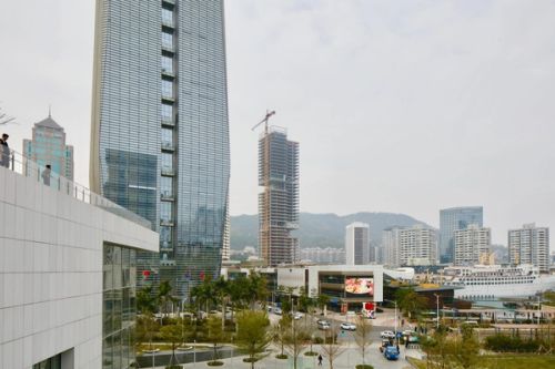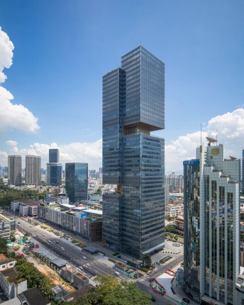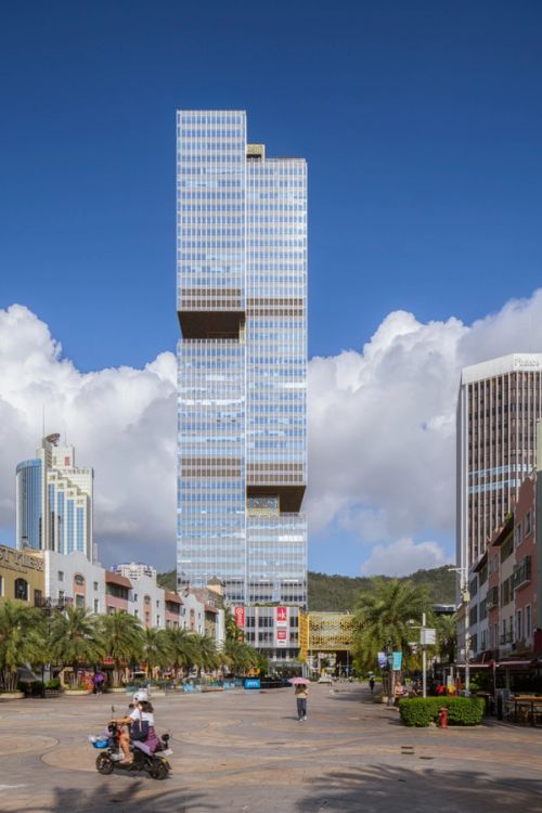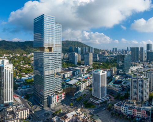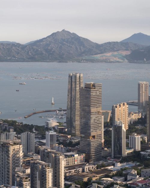Shekou is defined by a mixed landscape. Mountains and sea, an industrial fabric from the early economic reform era, and recent skyscrapers form a dynamic context. Prince Plaza is located in Shekou’s Sea World district—a unique coastal zone in Shenzhen backed by the Nanshan Mountains and facing the Shenzhen Bay, abundant in public outdoor spaces. The 200-metre mixed-use podium tower at once connects with Shekou’s latest commercial developments, its industrial past, and its everlasting natural environment.