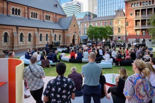PRINCIPLES Square is the central hub for Perth Design Week 2024. Formed with the PRINCIPLES furniture collection and located at the Cathedral Square in Perth’s city center, the space hosts a wide range of public activities throughout the Perth Design Week. PRINCIPLES Square marks the launch of the collection in Australia.