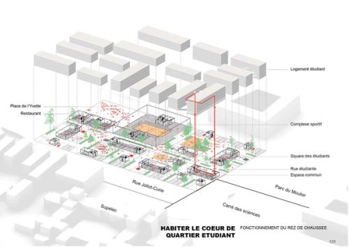 Following the competition for the Ecole Centrale in Saclay, OMA has been appointed urban planner and urban designer for the master plan of Joliot-Curie, a 33 ha area around the Ecole Centrale. Located on the plateau de Saclay, 40 km away from Paris, this new cluster concentrates most of the prestigious French schools (CentraleSupelec, Polytechniques, Ecole Normale Superieure, Mines Tech, Paris Sud) and the research and development units of majors companies such as EDF or THALES.