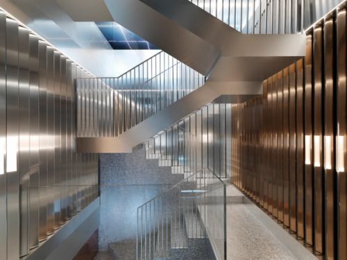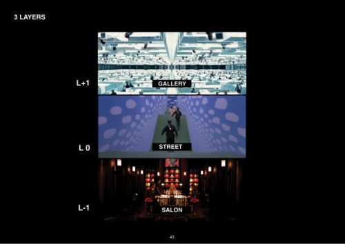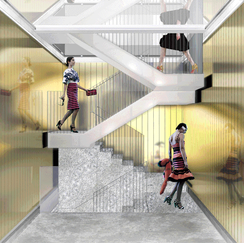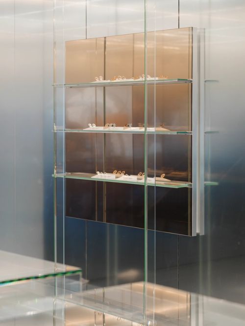 The proposal for the 90 square meter Repossi flagship on Place Vendome divides the store into three distinct spaces – contextually referred to as street, gallery and salon. Based on the idea that the collection of jewelry will be experienced and purchased at three different speeds – fast, slow, very slow - each floor responds to the different paces of shopping.