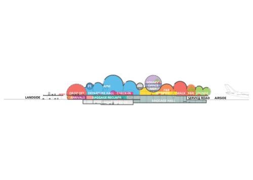 Our terminal – the Next Terminal – aims to express the airport’s one remaining certainty: movement. The next terminal is a reflection, not of things, but of relations between things. A celebration of the state of flux, true to the nature of terminals as infrastructures: facilitating not only circulation of passengers and airplanes, but of data, telecommunications, capital, commerce and energy. The next terminal reveals all.
