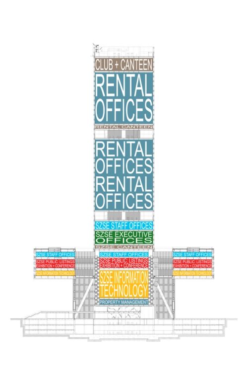 The essence of the stock market is speculation: it is based on capital, not material. The Shenzhen Stock Exchange is conceived as a physical materialization of the virtual stock market: it is a building with a floating base, representing the stock market - more than physically accommodating it. Typically, the base of a building anchors a structure and connects it emphatically to the ground. In the case of Shenzhen Stock Exchange, the base, as if lifted by the same speculative euphoria that drives the market, has crept up the tower to become a raised podium, defying an architectural convention that has survived millennia into modernity: a solid building standing on a solid base.