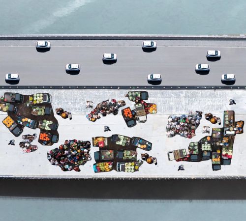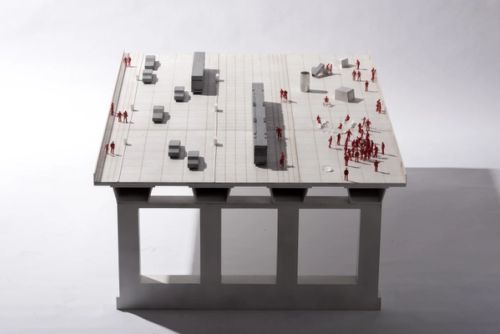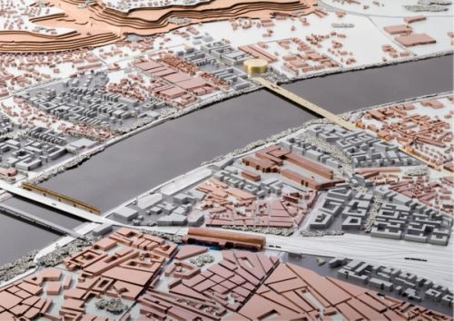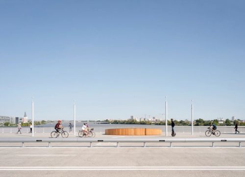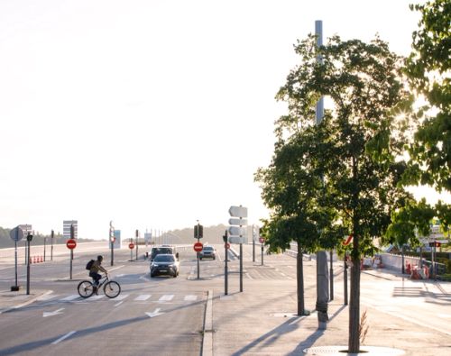 The Simone Veil Bridge consists of a platform stretched across the River Garonne in Bordeaux that is 549 meters in length and 44 meters wide. The bridge provides a new linear public space for the city. It abandons any interest in style, form, and structural expression in favor of a commitment to performance and an interest in potential use by the people of Bordeaux. Cars, modes of public transportation, and bicycles all have their own lanes, with the largest by far dedicated to foot traffic. The width of the bridge’s platform is doubled to create neutral, unprogrammed space that can be used for any cultural or commercial purpose, such as markets, fairs, rallies, car club meetings, and festivals for music or wine.