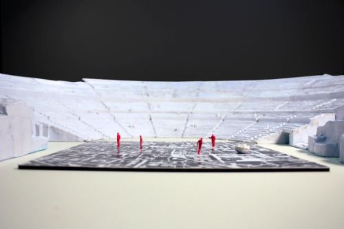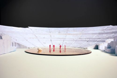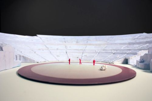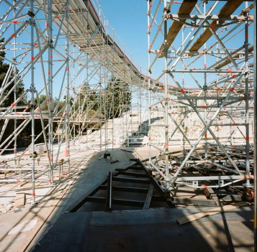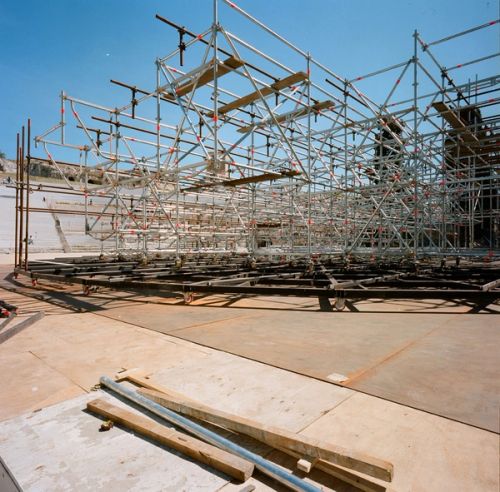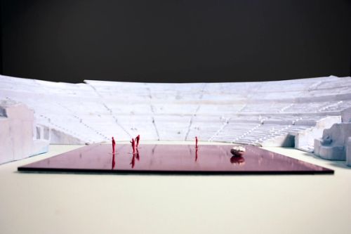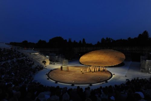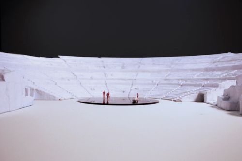 OMA's scenography features three temporary architectural devices that reinterpret the spaces of Syracuse's Greek Theatre, which dates from the 5th century BCE. The interventions are dramatically exploited and adapted at strategic moments within the summer cycle of plays staged by the Istituto Nazionale del Dramma Antico: Aeschylus's Prometheus Unbound (directed by Claudio Longhi), Euripides' Bacchae (dir. Antonio Calenda) and Aristophane's The Birds (dir. Roberta Torre).