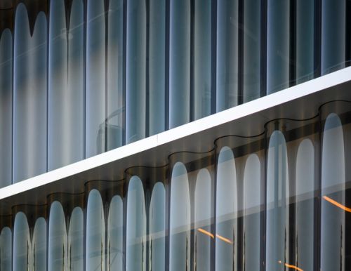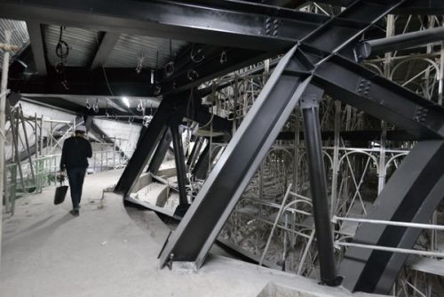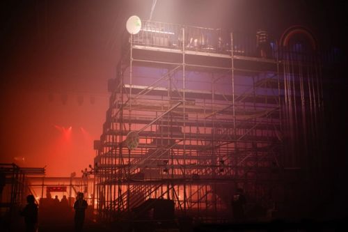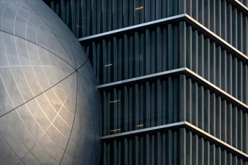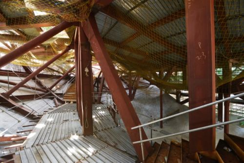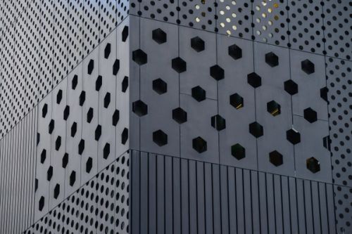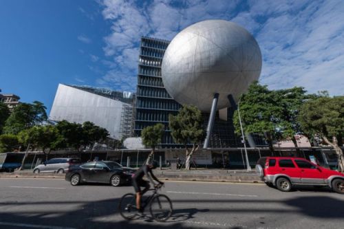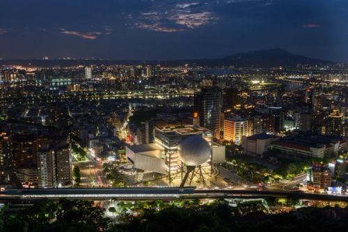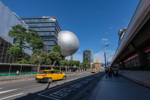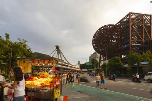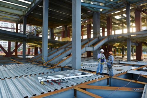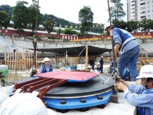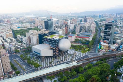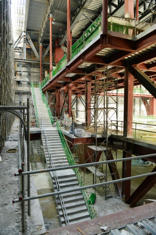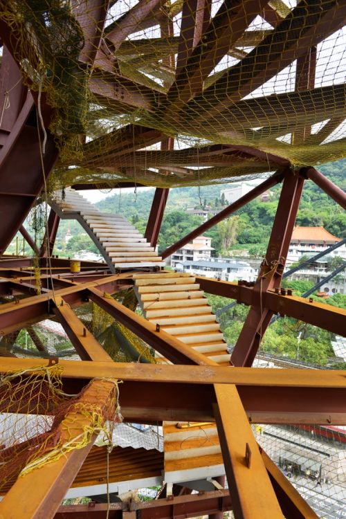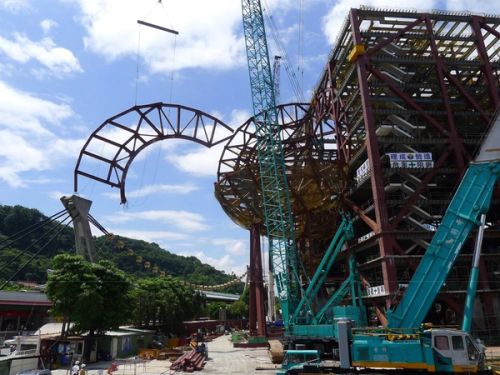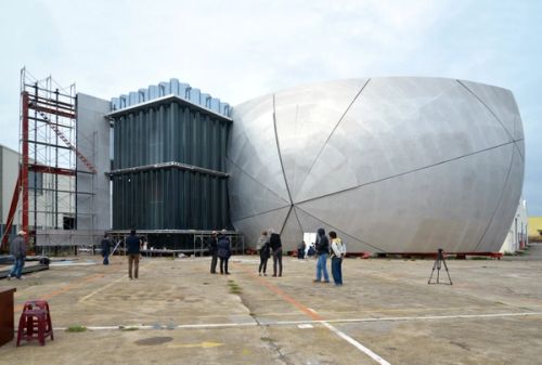 ![A view from North Taipei of facade works ongoing in January, 2016]()