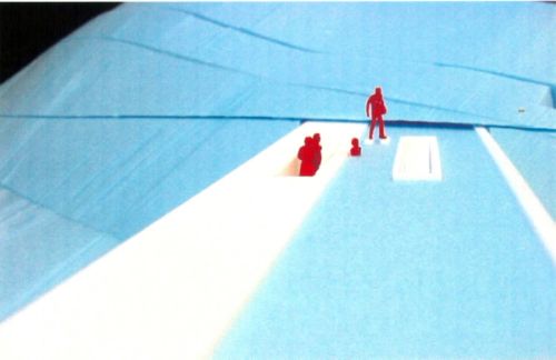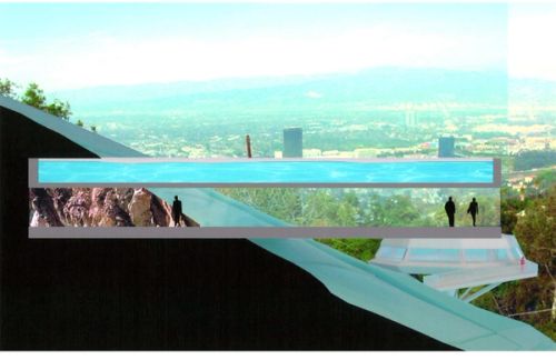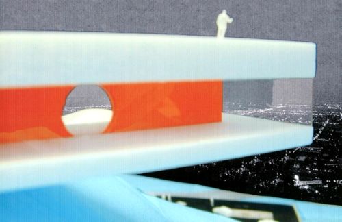 The 1960 octagonal Chemosphere House & the proposed extension by OMA is located on the San Fernando Valley side of the Hollywood Hills. The extension would provide a guesthouse and a sundeck with swimming pool. The (new) guest house is connected to the (old) Chemosphere House by a hillivator: providing a rollercoaster-like ride through the sloped area to the extension.