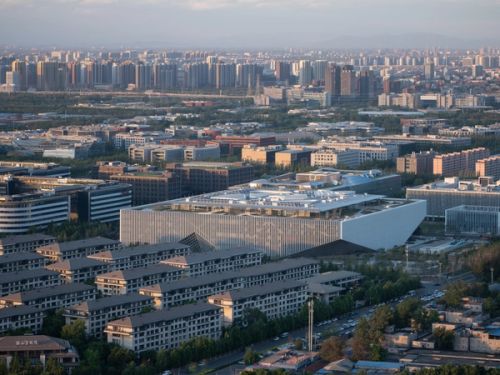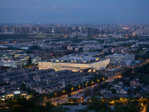 Tencent’s new headquarters in Beijing accommodates thousands of employees. Instead of seeking soaring heights to host the expansion of the digital workforce, OMA designed a square-shaped floating volume of merely 7 floors that stretches out horizontally, with the exceptionally large floorplan of 180 x 180m.